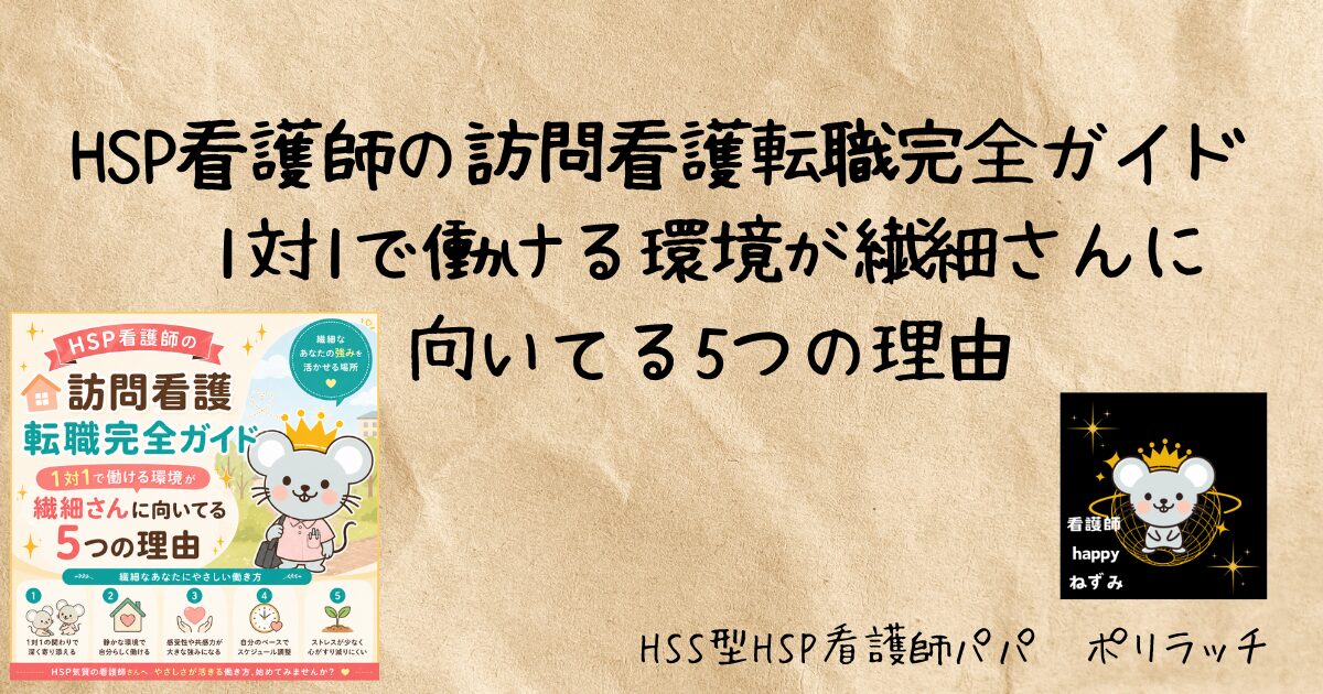 理由はシンプルで、「1対1の静かな環境で、自分のペースで動ける」という点が、HSP気質にとってこれほど合う職場はないと思ったからだ。急性期病棟のような騒音・緊迫感・多重タスクがなく、患者さんとじっくり向き合える。感情をもらいやすい特性も、訪問看護では「深く寄り添う力」として直接活きる。