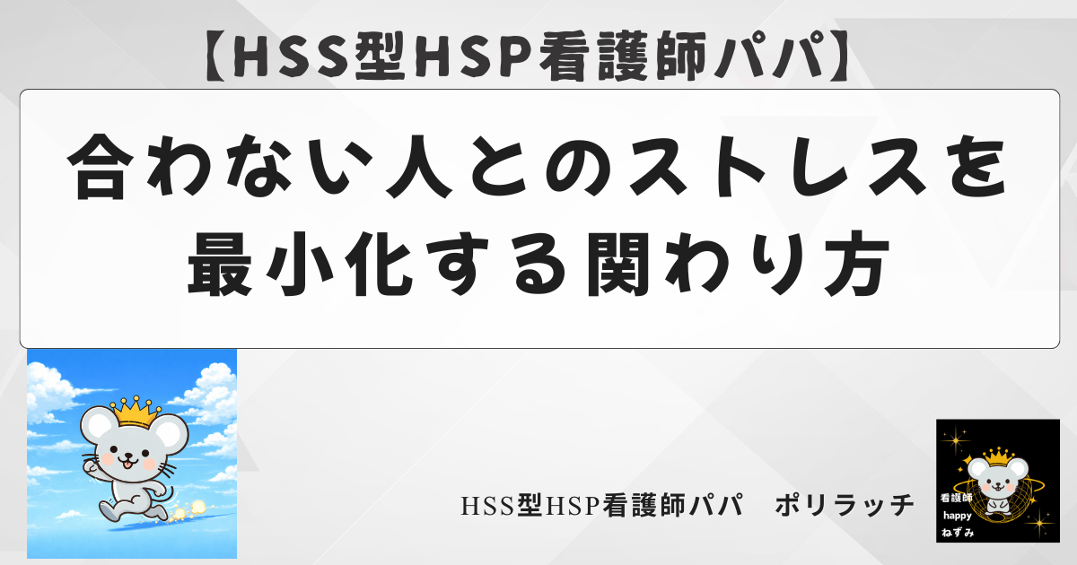 この記事では、なぜHSS型HSP看護師パパが「合わない人」との関わりでここまで消耗するのかを構造的に解説し、ストレスを最小化しながら関わり続けるための具体的な方法をお伝えします。