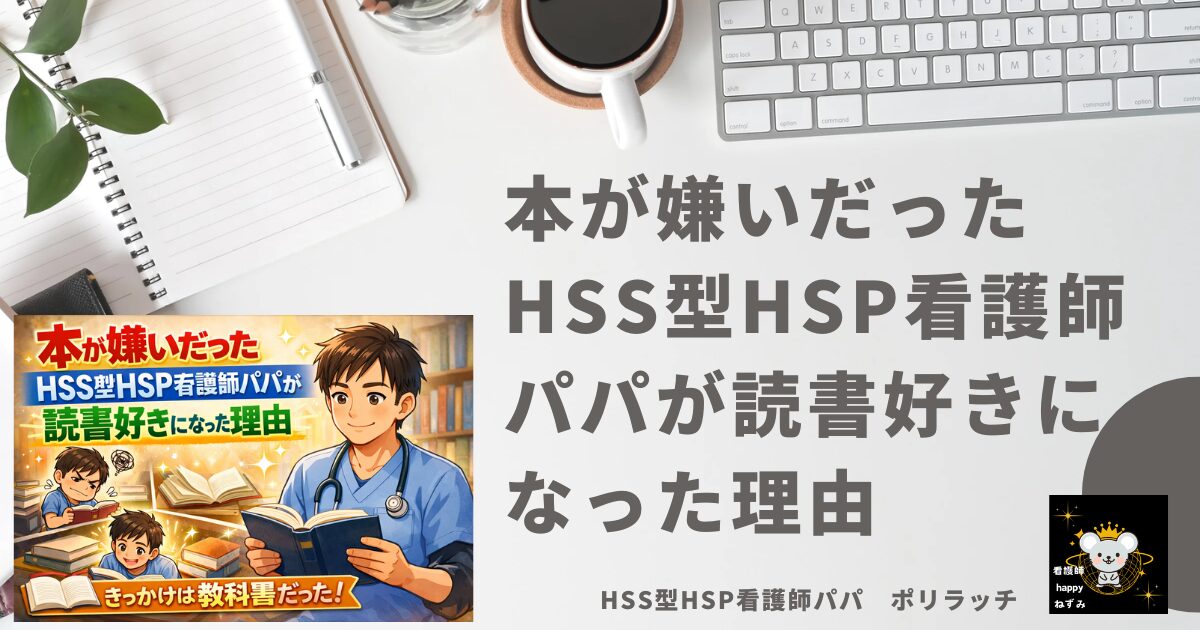 本嫌いだった自分が、今は「読書が心の充電になっている」と感じています。HSS型HSP看護師パパにとって、本は「深く、ひとりで、自分のペースで」向き合える最高のメディアかもしれません。