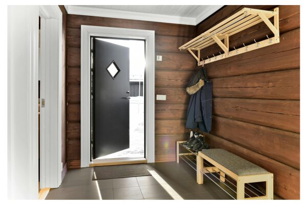 玄関で