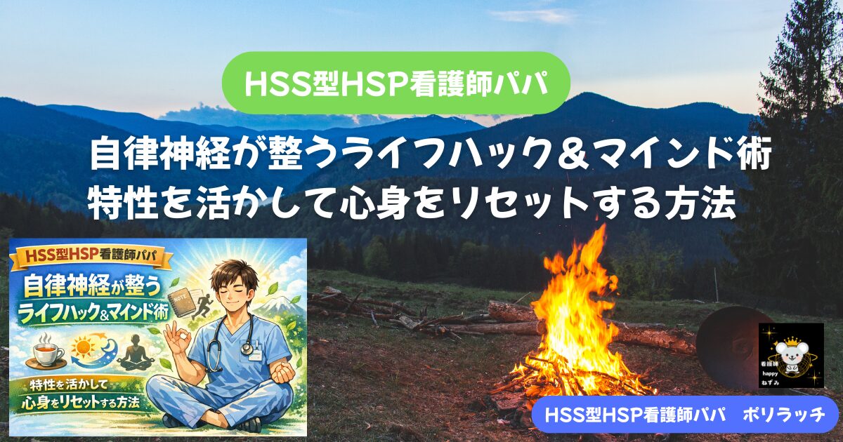 この記事では、HSS型HSP看護師パパの特性から生まれる自律神経の乱れの原因を解説し、特性を活かして自律神経を整える「ライフハック」と「マインド術」を具体的にお伝えします。