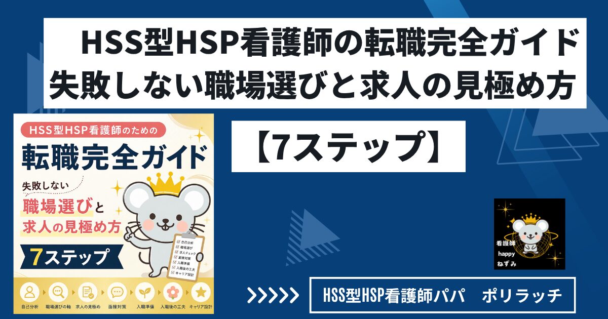 HSS型HSP看護師が「衝動的に辞めず」「吟味しすぎで止まらず」に転職するための7ステップ。エージェント選び、求人票の読み解き、面接質問テンプレートまで網羅。